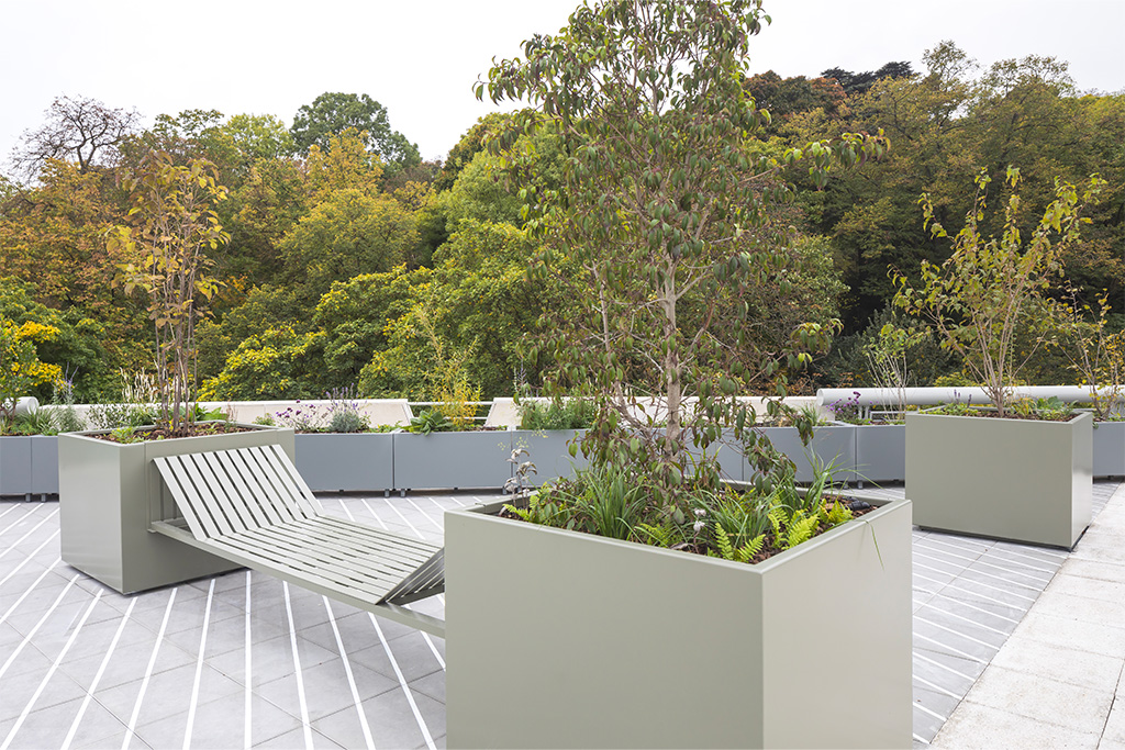 Aux étages, les bureaux et un mobilier haut de gamme offrent un cadre de travail souple et chaleureux. Un roof top végétalisé et accessible complète cette redynamisation et renforce le sentiment de bien-être. Ainsi, le 18 rue Troyon se présente comme un lieu emblématique, propice à la productivité et à la créativité, où la fonctionnalité rencontre l’esthétique.