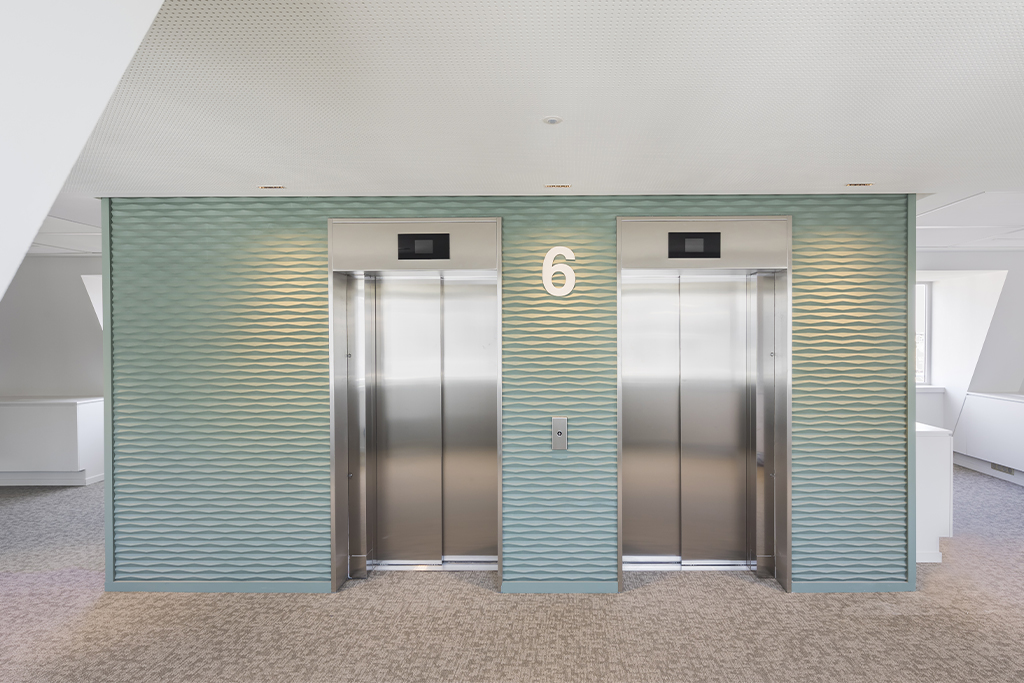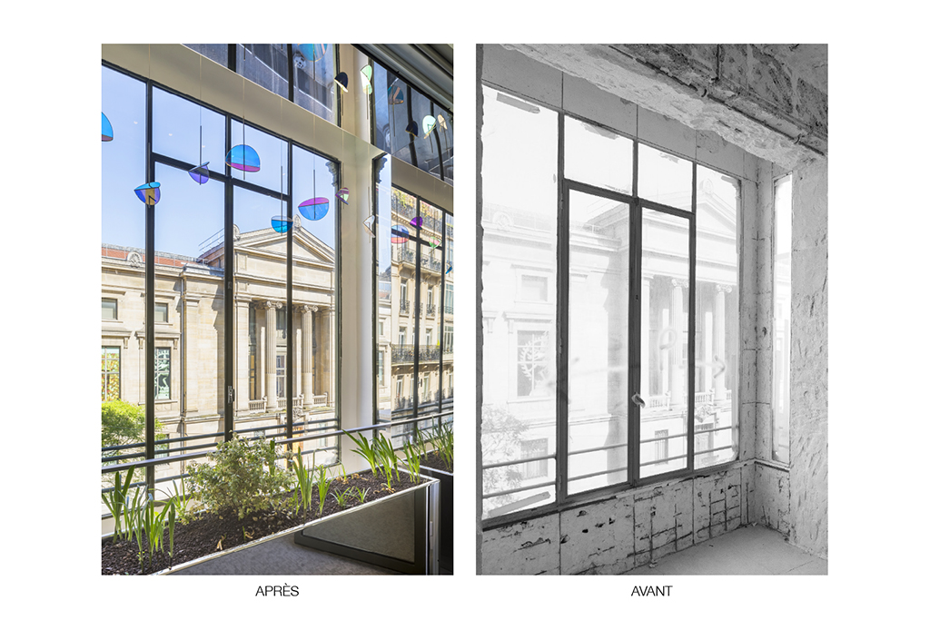 À l’intérieur, le bâtiment se transforme. Côté structure, l’escalier monumental est conservé, tandis que les escaliers secondaires sont reconfigurés pour répondre aux normes de sécurité en vigueur. Le sous-sol est réaménagé afin de retrouver des espaces nobles et qualitatifs, et les ascenseurs sont prolongés jusqu’à ce niveau. L’ensemble vise à fluidifier les circulations et à renforcer confort et accessibilité.