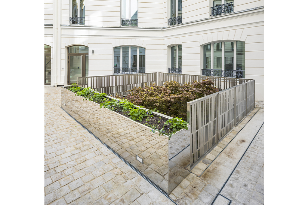 Mise en valeur de la cour – Jardinières en inox poli miroir
